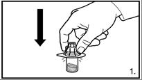 1. Poista adapteripakkauksen suojus. Kiinnitä adapteri kuiva-ainepulloon painamalla adapteria alaspäin kunnes adapterissa oleva piikki läpäisee kumitulpan ja adapteri napsahtaa paikalleen. |
