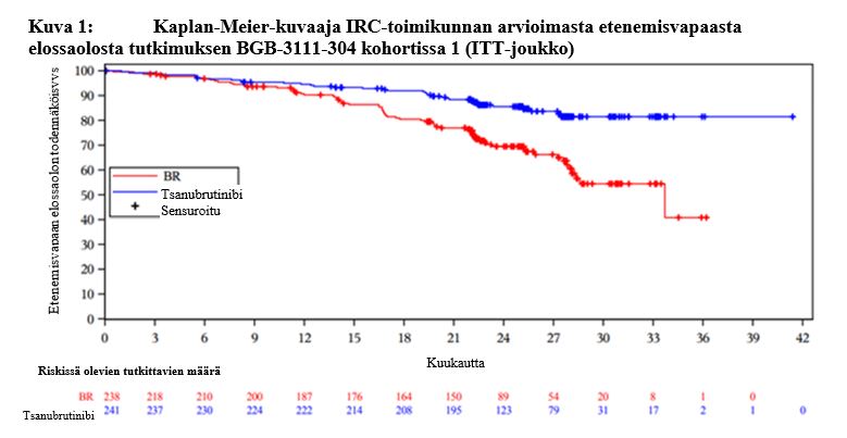 Taulukossa 1 on esitetty suositellut tsanubrutinibin annoksen muutokset, jotka koskevat asteen 3 tai suurempia haittavaikutuksia.