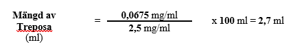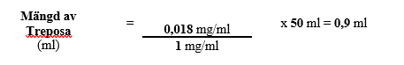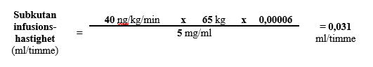 För en 65 kg person med en dos på 40 ng/kg/min med 5 mg/ml Treposa beräknas infusionshastigheten på följande sätt: