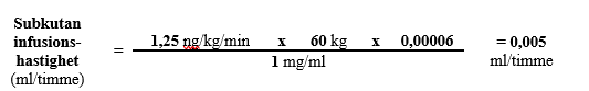 För en 60 kg person med rekommenderad initialdos på 1,25 ng/kg/min med 1 mg/ml Treposa kan infusionshastigheten beräknas på följande sätt: