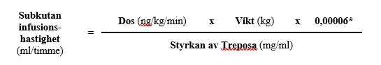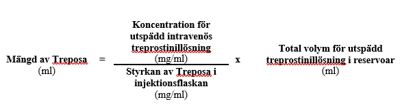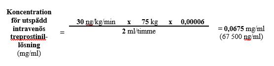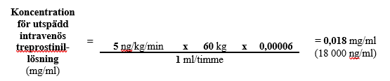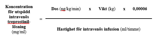 ∇ (ml/timme) = D (ng/kg/min) x W (kg) x [0,00006/treprostinilkoncentration (mg/ml)]