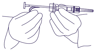 7. Håll sprutan som visas i figur 5 och dra ut nålen. Låt skyddshylsan glida och täcka över nålen. Släng sprutan i riskavfallsbehållare (för vassa föremål).