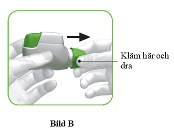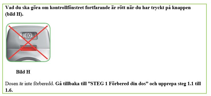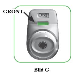 - Tryck inte på den gröna knappen förrän du är redo att ta en dos.