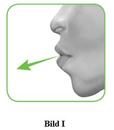 2.2 Håll huvudet upprätt, sätt munstycket mellan läpparna och slut läpparna tätt runt det (bild J).