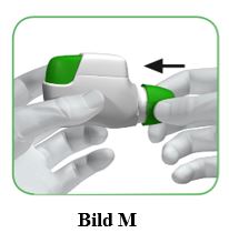 1.4 Tryck ned den gröna knappen helt för att ladda din dos (bild E).