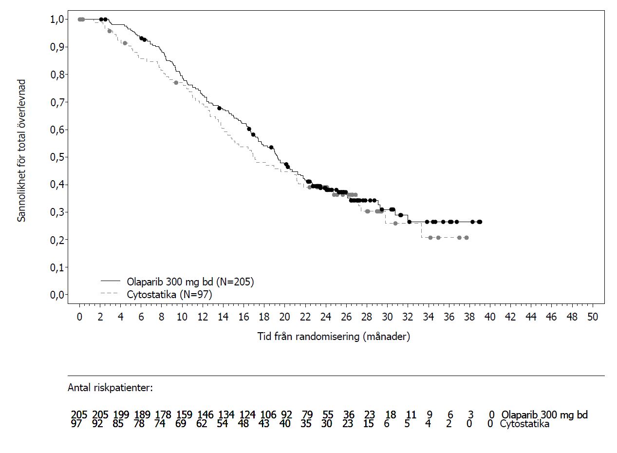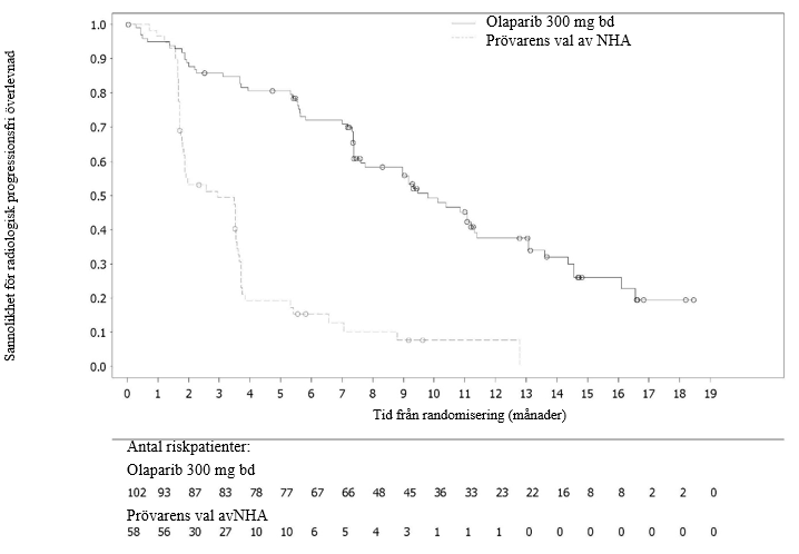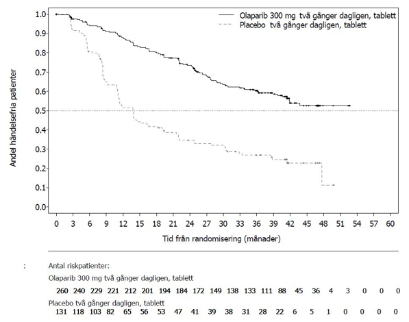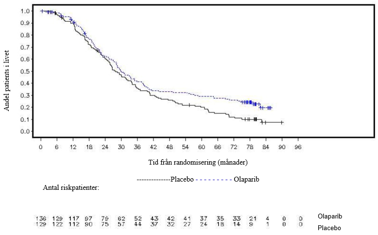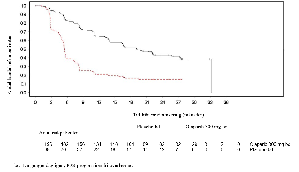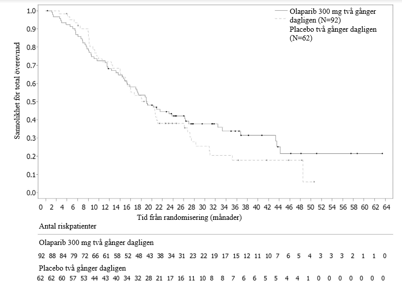 • underhållsbehandling av vuxna patienter med avancerad (FIGO stadie III och IV) BRCA1/2-muterad (germline och/eller somatisk) höggradig epitelial ovarial-, tubar- eller primär peritonealcancer som är i respons (komplett eller partiell) efter avslutad första linjens platinumbaserad cytostatikabehandling.