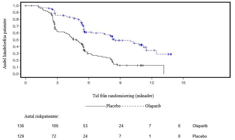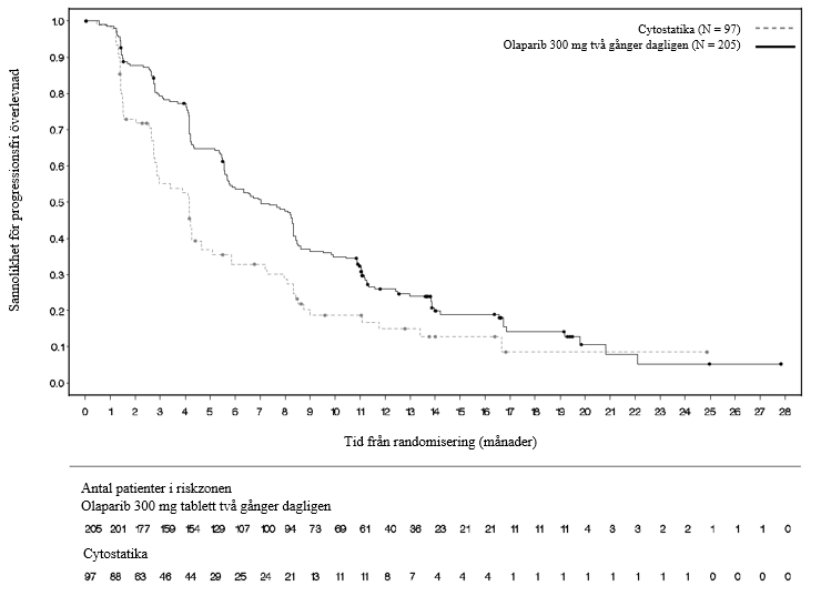 • underhållsbehandling av vuxna patienter med platinumkänslig recidiverande höggradig epitelial ovarial-, tubar- eller primär peritonealcancer och som är i respons (komplett eller partiell) efter platinumbaserad cytostatikabehandling.