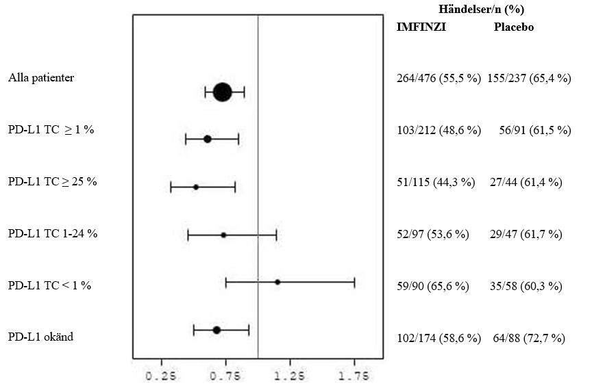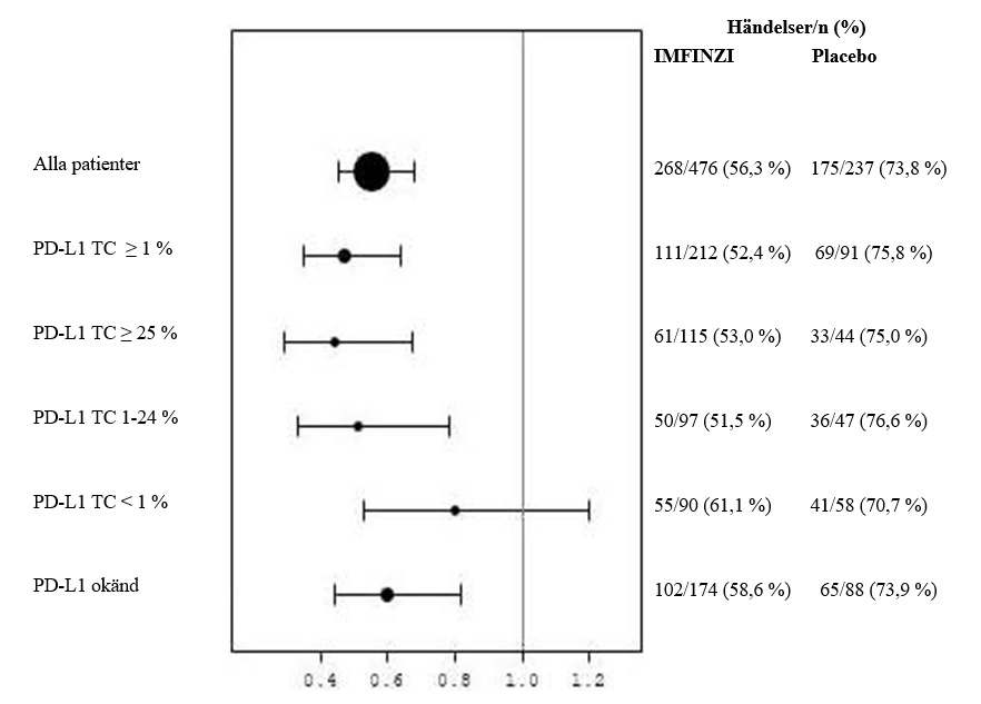 Patienter med lokalt avancerad NSCLC ska utvärderas för behandling baserat på tumöruttryck av PD-L1 som bekräftats med en validerad analysmetod (se avsnitt Farmakodynamiska egenskaper).
