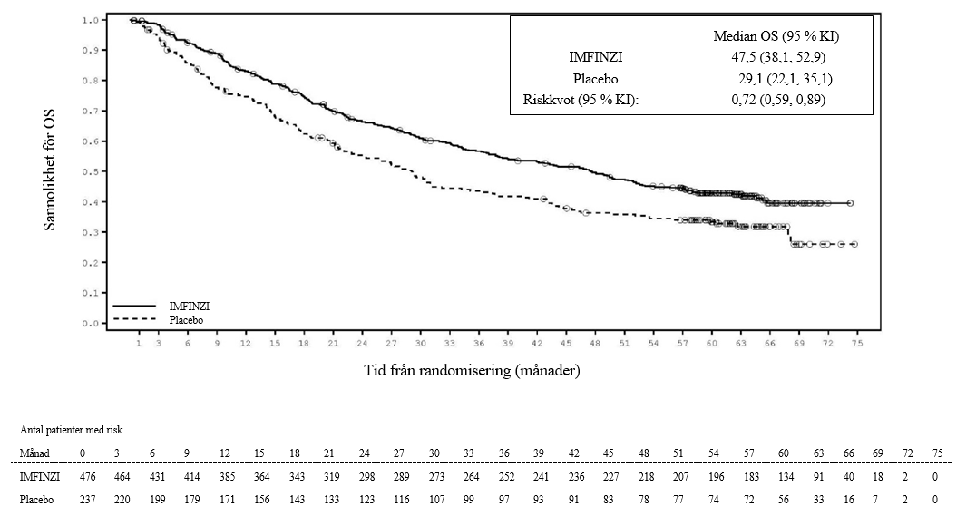 g Om patienter får färre än 4 cykler platinabaserad cytostatikabehandling ska de återstående cyklerna av tremelimumab (upp till totalt 5) tillsammans med IMFINZI ges under fasen efter platinabaserad cytostatikabehandling.