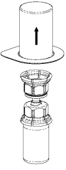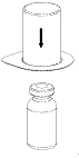 | 3. Ta försiktigt bort förpackningen från Mix2Vial-setet genom att ovanifrån ta tag om kanten och dra rakt upp. Se till att endast förpackningen tas bort, inte Mix2Vial-setet. |