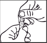Det finns en förmarkerad skåra nedanför den färgade punkten på ampullen, vilket eliminerar behovet av att fila på ampullhalsen. Innan ampullen öppnas, försäkra dig om att all vätska i den övre delen av ampullen rinner ner till den nedre delen av ampullen. Använd båda händerna för att öppna; medan du håller den nedre delen av ampullen i ena handen, använd den andra handen för att bryta den övre delen av ampullen i riktning bort från den färgade punkten.