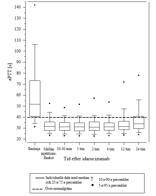 Figur 6 – Reversering av dabigatraninducerad förlängd koagulationstid fastställd med aPTT hos patienter från RE‑VERSE AD‑studien (N=486)
