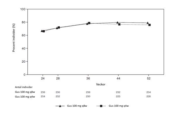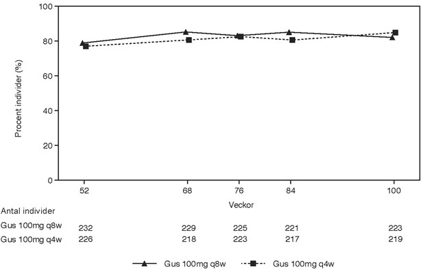 a Guselkumab 400 mg subkutant vid vecka 0, vecka 4 och vecka 8