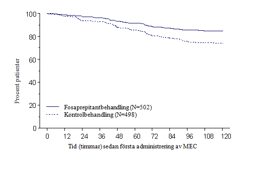 I tabell 3 visas det rekommenderade doseringsschemat för IVEMEND, som ska administreras med en 5‑HT3‑antagonist, med eller utan kortikosteroid, för profylax mot illamående och kräkningar i samband med högemetogen (HEC) eller måttligt emetogen (MEC) cytostatika administrerad enligt ett endags- eller flerdagarsbehandlingsschema. Behandlingsscheman för endagsbehandling med cytostatika inkluderar scheman i vilka HEC eller MEC endast administreras en dag. Behandlingsscheman för flera dagar lång behandling med cytostatika inkluderar scheman i vilka HEC eller MEC administreras under två eller flera dagar.
