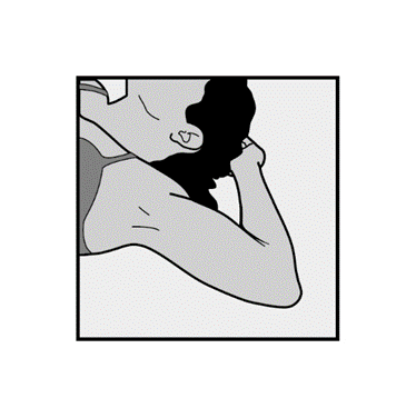 - Låt kvinnan ligga ner på rygg på undersökningsbritsen med hennes icke‑dominanta arm böjd vid armbågen och utåtroterad så att handen ligger under huvudet (eller så nära som möjligt) (Bild 1).