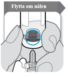 Sprutlocket måste tas av från den förfyllda sprutan innan den medföljande nålen med skydd sätts fast.