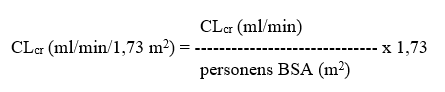 Därefter justeras CLcr för kroppens ytarea (BSA; body surface area) enligt följande: