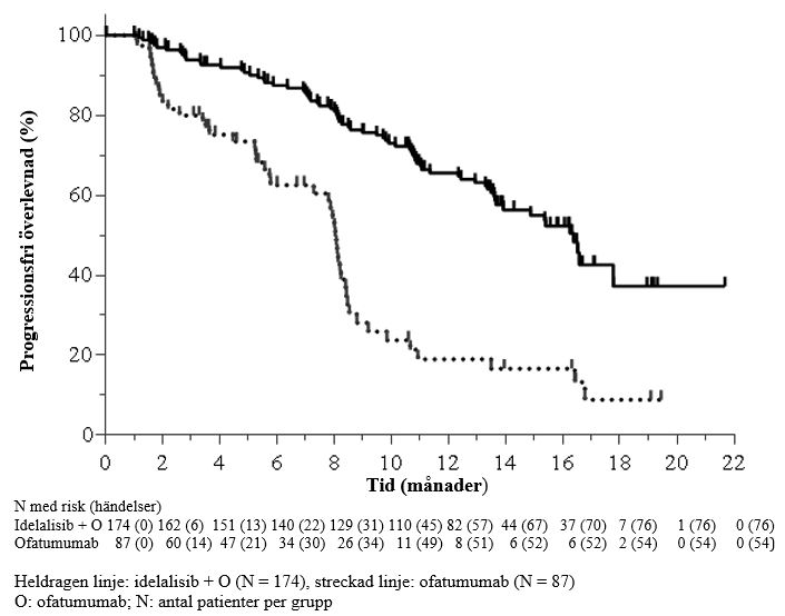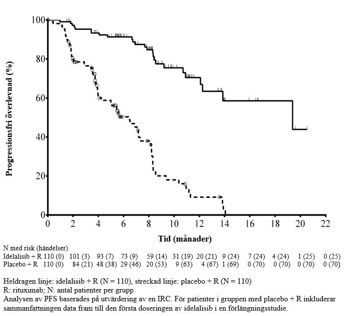 Rekommenderad dos är 150 mg idelalisib två gånger dagligen. Behandlingen ska fortsätta till sjukdomsprogression eller oacceptabel toxicitet.