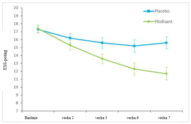 *endast uppmätt hos patienter med narkolepsi typ 1