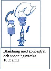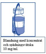 Injicera hela innehållet i motsvarande injektionsflaska med koncentrat.