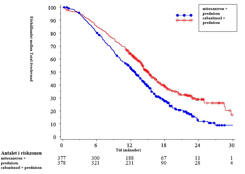 Hos patienter med måttlig leverfunktionsnedsättning (totalt bilirubin >1,5 till ≤ 3,0 gånger ULN), är den högsta tolererbara dosen (MTD) 15 mg/m2. Om behandling planeras för patienter med måttligt nedsatt leverfunktion ska dosen av cabazitaxel inte överskrida 15 mg/m2. Det finns dock endast begränsade effektdata för denna dos.