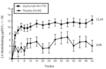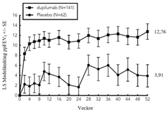 Dupilumab är avsedd för långtidsbehandling. Behovet av fortsatt behandling bör övervägas åtminstone på årsbasis, baserat på läkarens bedömning av patientens grad av astmakontroll.
