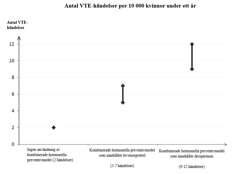- Hög risk för venös tromboembolism på grund av förekomst av flera riskfaktorer (se avsnitt Varningar och försiktighet)