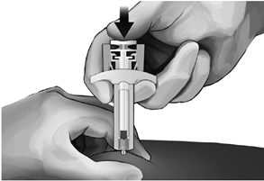• Nyp huden på injektionsstället mellan tumme och finger på det sätt som illustreras (se bild 5).