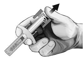 • Ta ut sprutan ur kartongen: plocka upp sprutan genom att hålla i nålskyddsenheten.
