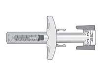 • Så snart som nålen tagits bort helt från huden, ta långsamt bort tummen från kolvgreppet och låt nålskyddsenheten automatiskt täcka den exponerade nålen (se bild 8). Det kan förekomma lite blod på injektionsstället. Om det behövs kan man torka med en bomullstuss eller kompress.