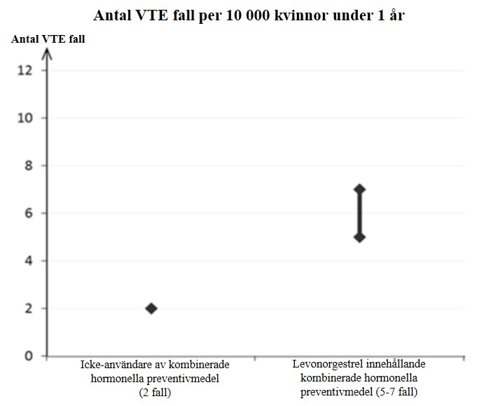 En ökad risk för arteriella och venösa trombotiska och trombemboliska händelser, t.ex. myokardiell infarkt, stroke, transitoriska ischemiska attacker, venös trombos och lungemboli har observerats hos kvinnor som använder kombinerade hormonella preventivmedel, vilket diskuteras mer i detalj i avsnitt Varningar och försiktighet.
