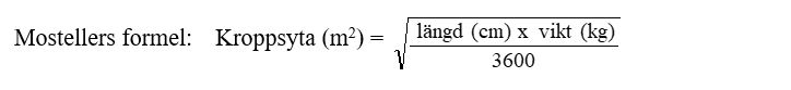 Beräkning av den volym Viramune oral suspension (50 mg/5 ml) som ska användas för barn vid dosering baserad på kroppsyta 150 mg/m2: