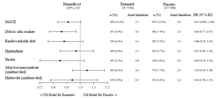 Bakgrundsbehandlingar i kliniska studier med exenatid med långsam frisättning inkluderade kost och motion, metformin, en sulfonureid, en tiazolidindion eller en kombination av orala glukossänkande medel eller ett basinsulin.
