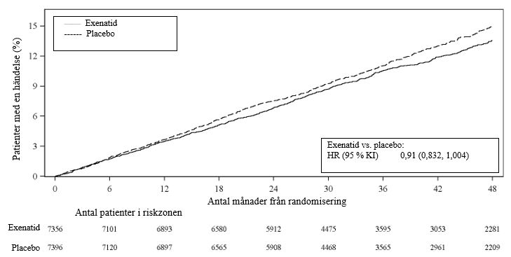 I kliniska studier ökade risken för hypoglykemi när exenatid med långsam frisättning användes i kombination med en sulfonureid. I kliniska studier har även patienter med lätt nedsatt njurfunktion, som fått kombinationsbehandling med en sulfonureid, haft förhöjd förekomst av hypoglykemi, jämfört med patienter med normal njurfunktion. För att minska risken för hypoglykemi i samband med användning av en sulfonureid, bör en reduktion av sulfonureiddosen övervägas.