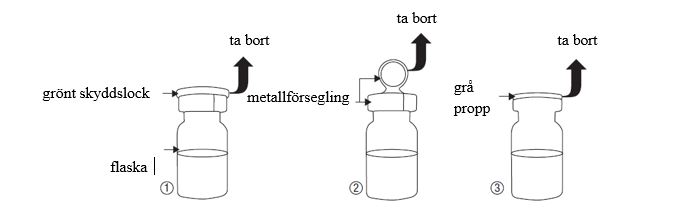 - Vidrör inte flaskans öppning efter att du har tagit bort den grå proppen.