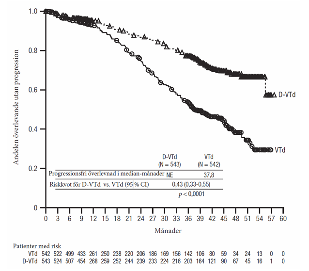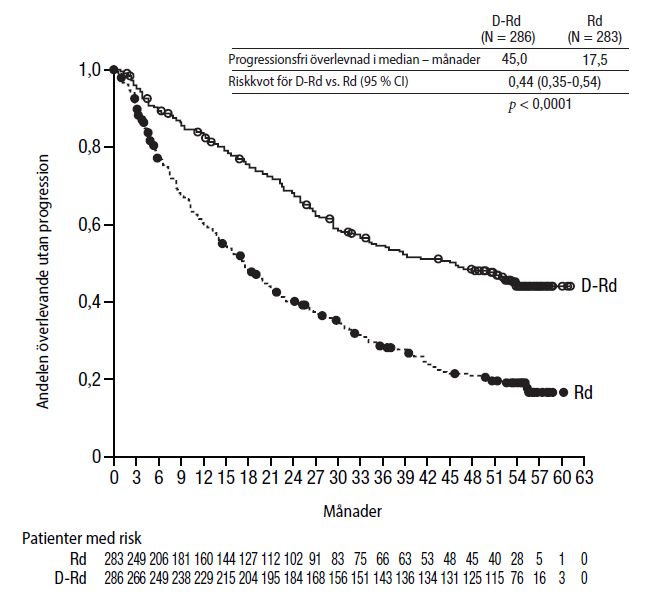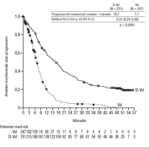 c DARZALEX kan sättas ut hos patienter som har uppnått MRD-negativitet som är ihållande i 12 månader och som har underhållsbehandlats i minst 24 månader.
