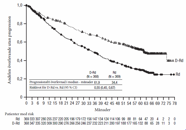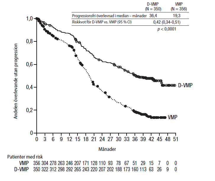 • i kombination med lenalidomid och dexametason eller med bortezomib, melfalan och prednison för behandling av vuxna patienter med nyligen diagnostiserat multipelt myelom och som inte är lämpliga för autolog stamcellstransplantation.