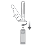 • Det gör inget om små bubblor finns kvar i läkemedlet. Stora luftbubblor kan däremot minskas genom att kolven dras tillbaka så att bubblorna spricker och luften sedan trycks ut mycket långsamt. Luften ska tryckas ut med stor försiktighet så att inget läkemedel går förlorat.