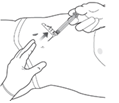 Nyp ihop huden runt injektionsstället. Tillräckligt mycket hud ska nypas ihop för att inrymma kanylen. Lyft upp fettvävnaden från underliggande muskel för att undvika oavsiktlig intramuskulär injektion.