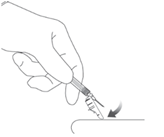 Håll sprutan upprätt i flera sekunder så att luftbubblorna stiger till ytan. Läkemedlet är en viskös vätska, så bubblorna stiger inte lika snabbt som i en vattenlösning.