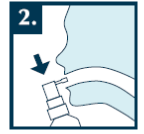 Öppna munnen ordentligt, rikta spraymunstycket mot svalget och tryck 1-2 gånger på sprayhuvudet. Håll andan medan du sprayar.